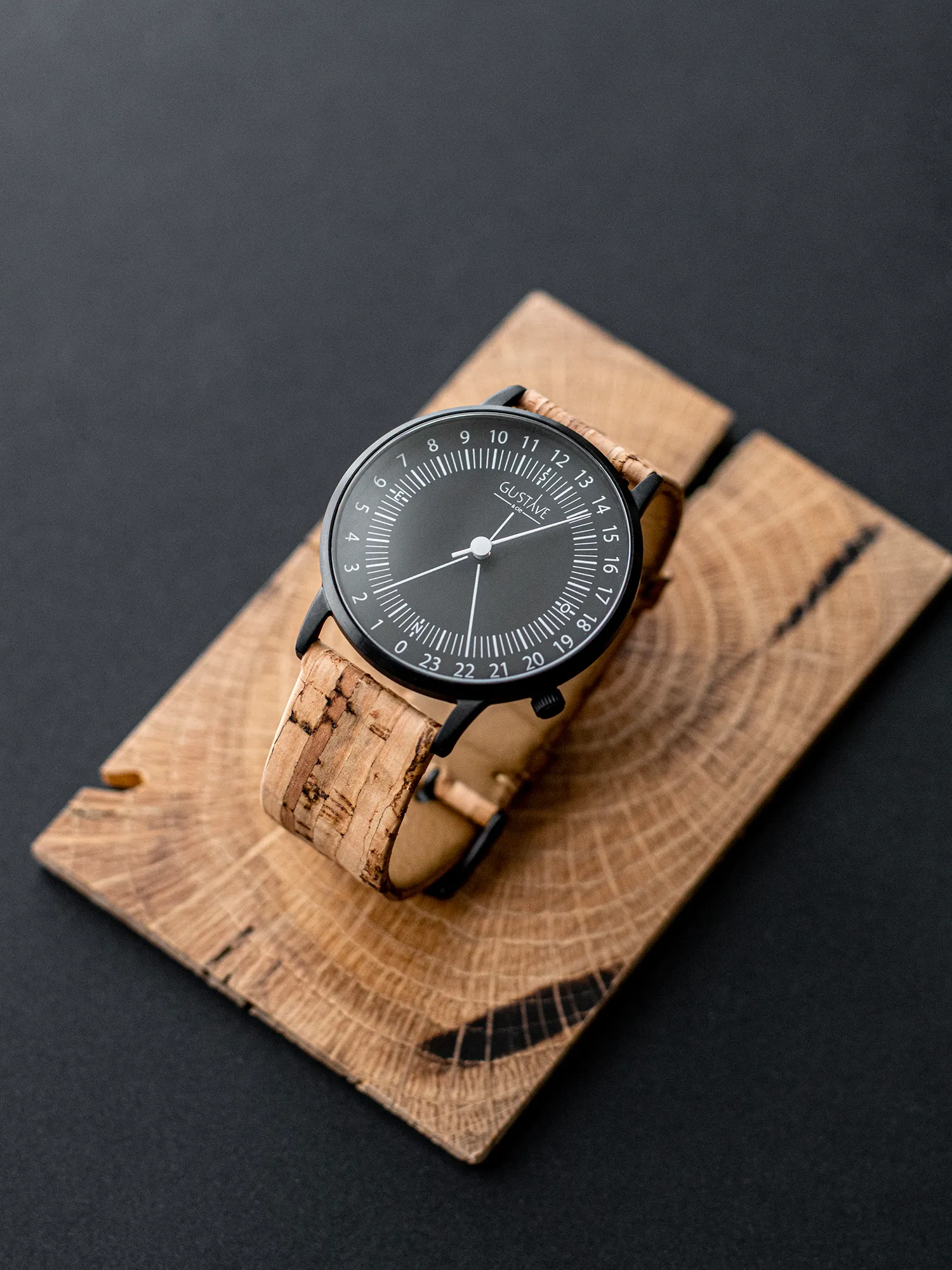La seule et unique aiguille indique simultanément les heures et les minutes sur un cadran gradué sur 24H.