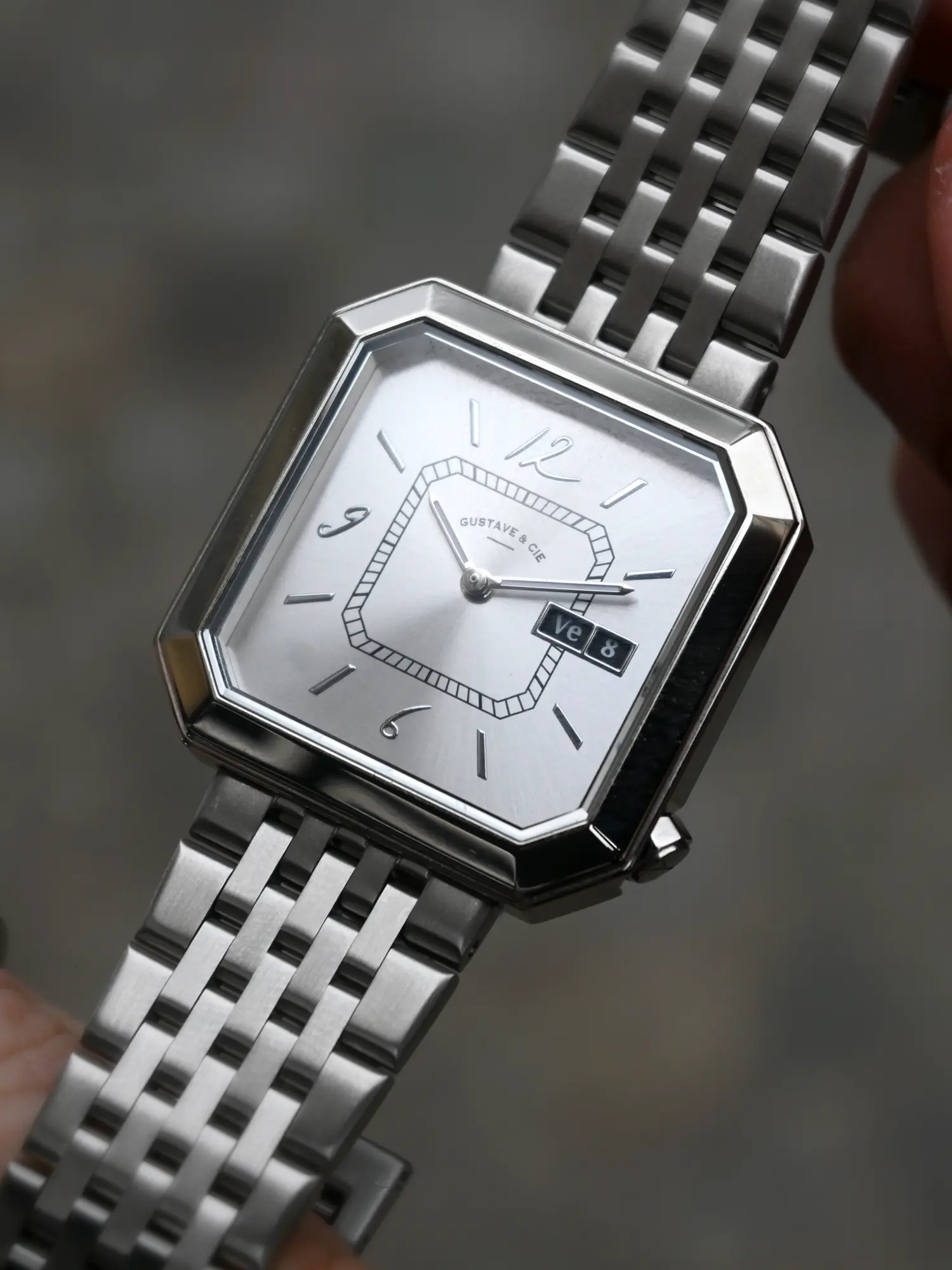 Cette montre quartz se distingue par son cadran argent, lumineux et épuré, sublimé par deux aiguilles raffinées. Le boîtier en acier inoxydable argent mesure 34 x 34 mm, offrant une allure sobre et contemporaine qui s’adapte à toutes les occasions.